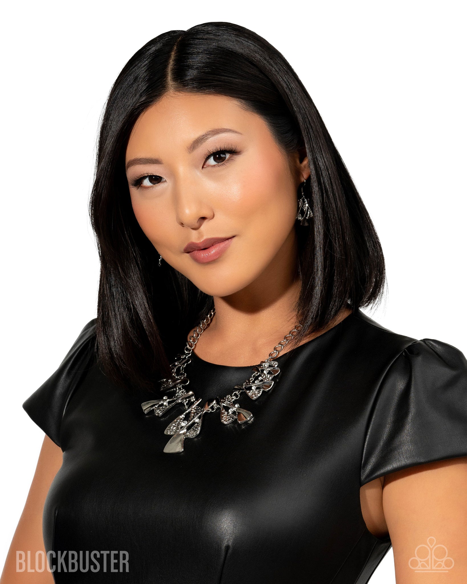 Embellished along a chunky silver chain, twisted hourglass-like shapes, half hammered in texture gradually increase in size as they get to the center of the design for an elegantly esteemed look. Dainty white rhinestones are randomly interspersed along the shapes, adding dazzling depth to the design. Features an adjustable clasp closure.